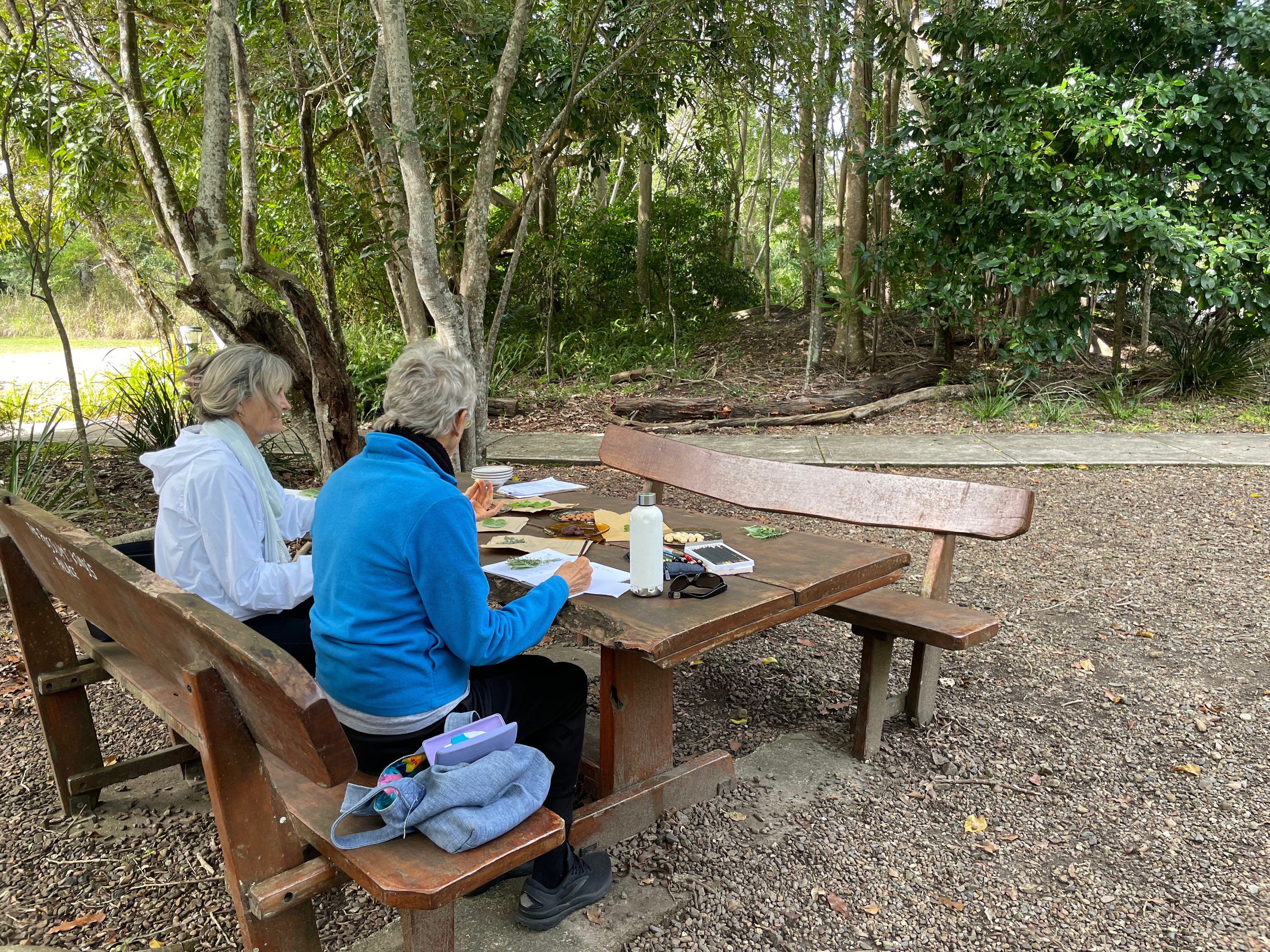 In one of the sessions we focused on sight. We experimented with looking beyond what we can immediately see to notice the finer details in nature. This led to some interesting conversations about the concept of wonder and making time for ourselves as adults to engage in this as we move through natural environments. From here we also discussed setting boundaries to make time for ourselves. It’s amazing where the conversations will take you.